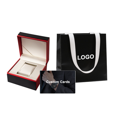 Nhà Máy Cung Cấp Sang Trọng Cao Cấp PU Da Đồng Hồ Bao Bì Hộp Với Gối Biểu Tượng Tùy Chỉnh Đen Đồng Hồ Màu Đỏ Lưu Trữ/Hộp Quà Tặng